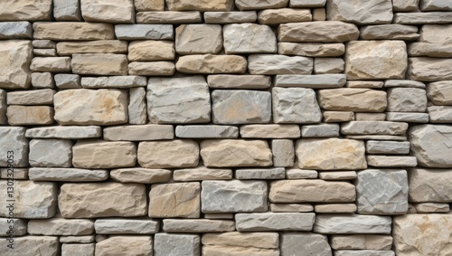 Textured Stone Wall with Varying Sizes of Gray Stones in a Horizontal Pattern for Construction Background