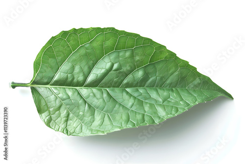 Textured sunflower leaf with green veins and realistic surface isolated on white background