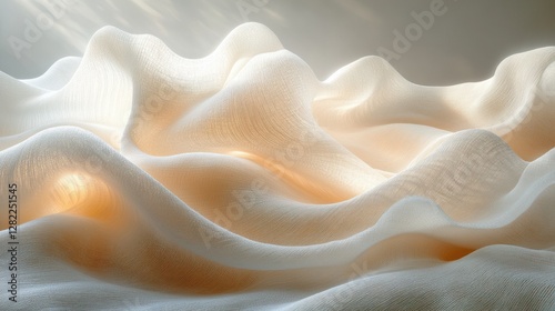 Textured White Fabric Waves in Surreal Landscape Soft Light Macro Detail