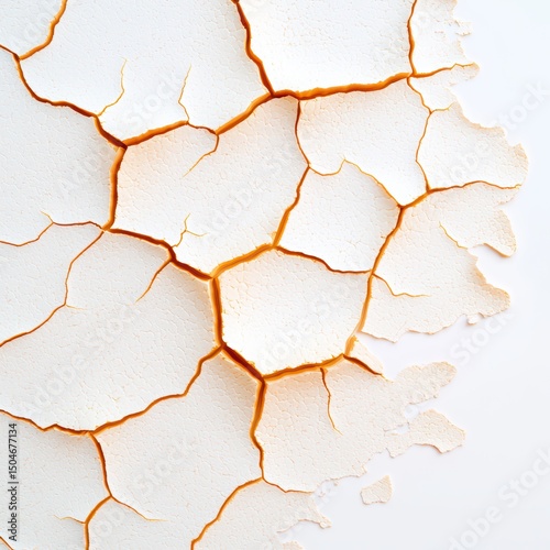 Textured White Surface with Cracks and Dry Patterns, Abstract Natural Background for Creative Projects