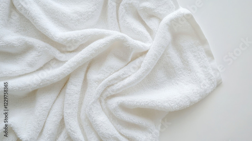 Textured white towel draped artistically on a light background showcasing its softness and plush fabric