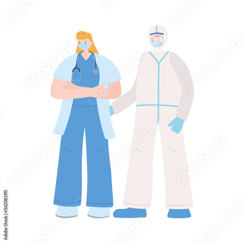 thank you essential workers, medical staff group with uniform, wearing face masks, coronavirus covid 19 disease