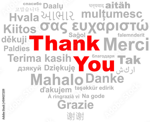 Thank you gratitude heart grateful appreciation in different languages word cloud vector