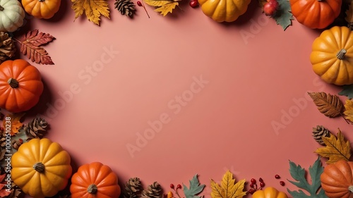 Thanksgiving decoration border 3D rendering in pastel red background