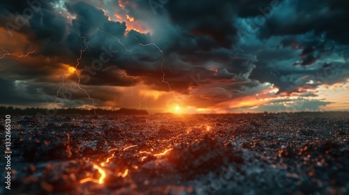 The abstract storm brings a powerful light show. Dark clouds and rain add to the dramatic display.