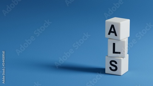 the acronym als for Amyotrophic Lateral Sclerosis concept represented.close up of wooden elements,Business Concept.3D rendering on blue background.