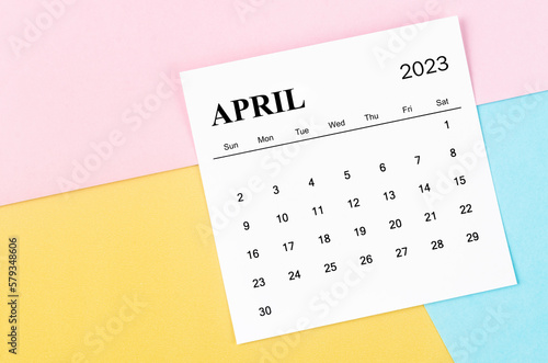 The April 2023 Monthly calendar on colorful background.