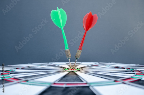 The arrow in the middle of the dartboard Demonstrate the concept of a successful business goal