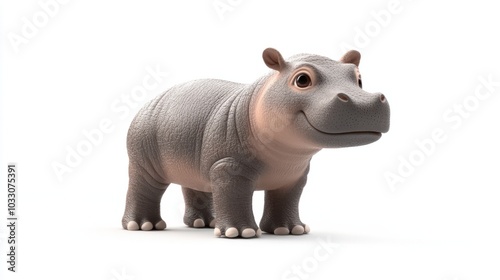 the baby hippo walking with tiny steps, big feet and rounded body, isolated on white background