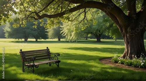 The background is a beautiful garden view covered with green grass and natural fresh air