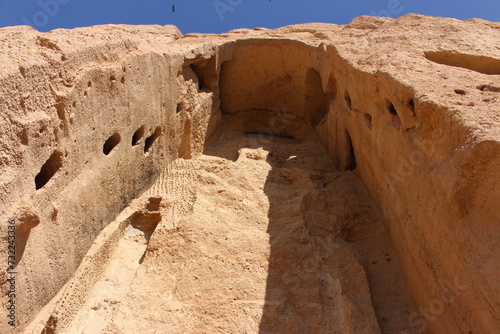 The Bamiyan Buddhas were two large statues located in Afghanistan, constructed in the 6th to 7th century AD. These statues, made of granite, stood in the city of Bamiyan and were significant cultural