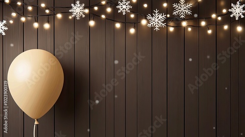 The beautifully textured wooden backdrop features white snowflakes and soft Christmas lights, perfect for showcasing products with a festive touch and creating a warm atmosphere
