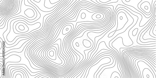 The black grey on white contours vector topography stylized height of the lines. The concept of a conditional geography scheme and the terrain path. Ultra wide. Map vector terrain Illustration.