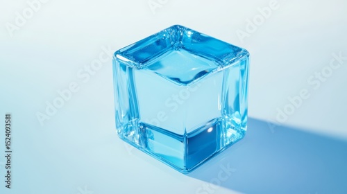 The blue glass cube illustration represents innovation, with the cube requiring the transparent texture of translucent glass