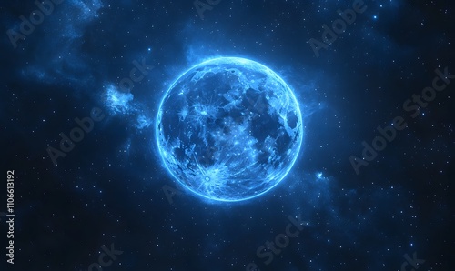 The blue supermoon casting a shimmering blue reflection or light effect on an abstract