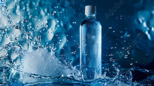 The bottle is filled with clean, light gray liquid, with a background of soft tones and high-saturation dark colors, Generative AI illustrations.