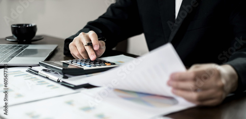 The businessman hand sits at their desks and calculates financial graphs showing the results of their investments planning the process of successful business growth