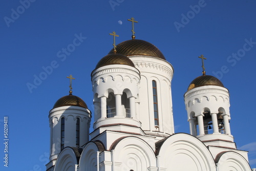 The church is made of white stone. Religion. Orthodoxy. Architecture.