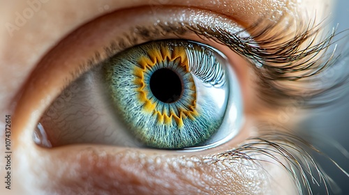 The close up view reveals the intricate pattern of the iris, with shades of blue, green, and brown blending together in a mesmerizing display of color and texture.