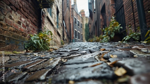 The cobbled path meanders past a striking blend of old and new architecture each building standing out with its own unique flair and . AI generation.