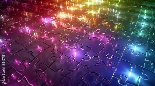 The color spectrum radiating from the puzzle suggesting the puzzles connection to light and energy.