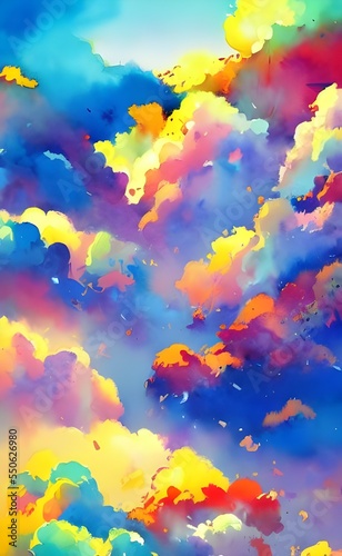 The colorful clouds watercolor is a beautiful painting. The colors are very bright and vibrant. The clouds look like they are in motion.