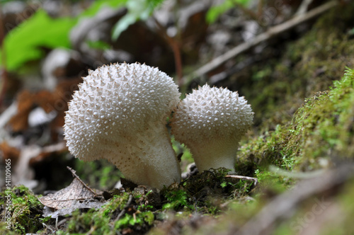 The Common Puffball (Lycoperdon perlatum) edible mushroom can be eaten by slicing and frying in batter or egg and breadcrumbs, or used in soups