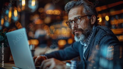 The company chief operating officer is at work, managing processes with a laptop. Generative AI.
