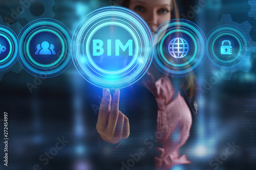 The concept of business, technology, the Internet and the network. A young entrepreneur working on a virtual screen of the future and sees the inscription: BIM