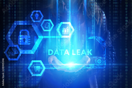 The concept of business, technology, the Internet and the network. A young entrepreneur working on a virtual screen of the future and sees the inscription: Data leak