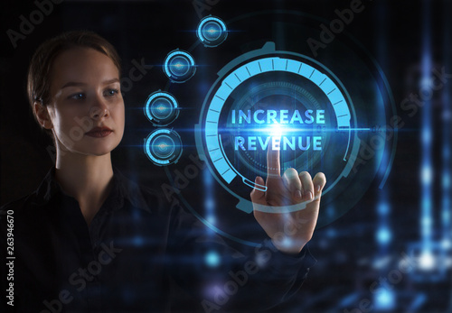 The concept of business, technology, the Internet and the network. A young entrepreneur working on a virtual screen of the future and sees the inscription: Increase revenue