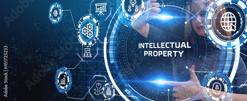 The concept of business, technology, the Internet and the network. A young entrepreneur working on a virtual screen of the future and sees the inscription: Intellectual property