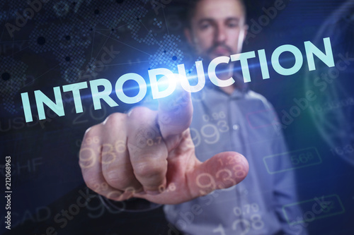 The concept of business, technology, the Internet and the network. A young entrepreneur working on a virtual screen of the future and sees the inscription: introduction