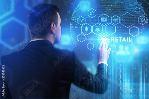 The concept of business, technology, the Internet and the network. A young entrepreneur working on a virtual screen of the future and sees the inscription: Retail