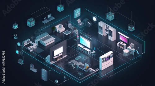 the concept of the Internet of Things with an image of a smart home, featuring various connected devices and appliances AI