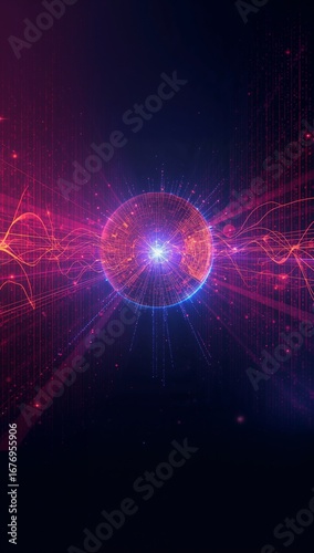 The convergence of sound waves data flows and neon energy spheres representing the fusion of AI technologies