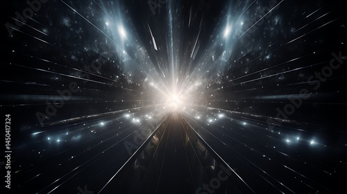 The Cosmic Corridor: A breathtaking artistic depiction, light cascades from an infinite point, symbolizing a journey into the unknown.
