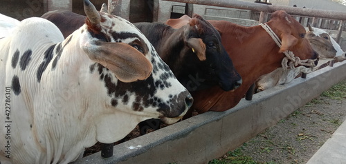 The cows are watching there with good style and looking very beautiful. The shooting date is March, 24, 2021. District, Sahiwal, Punjab, Pakistan.