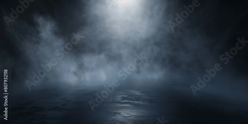 The dark stage shows, dark background, an empty dark scene, neon light, and spotlights. The concrete floor and studio room with smoke float up the interior texture. High quality photo