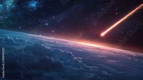 The dazzling flash of a meteor cutting through the night sky provides a stunning visual.