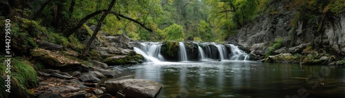The depth of field in nature makes the waterfall stand out while keeping the background dreamy