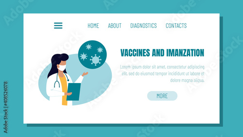 The doctor talks about the symptoms of the covid coronavirus . Template for a medical services website, landing page. Vector character in a flat style
