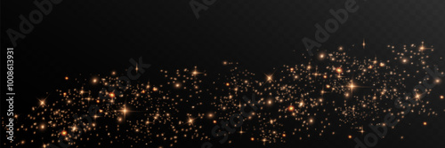 The dust sparks and white stars shine with special light. Vector sparkles on a transparent background. Christmas light effect. Sparkling magical dust particles.