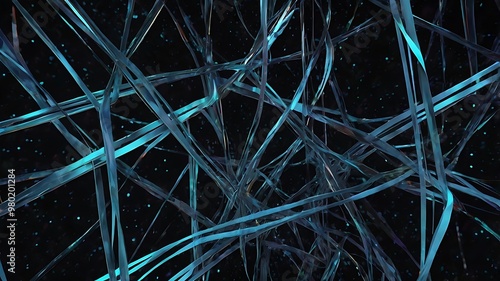 The Embodiment of Dark Fantasies: Mesmerizing Flying Ribbons in the Void of Space with Intricate Network Connection Structure, Perfect for Futuristic and Abstract Digital Art Themes