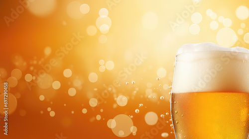 The enticing appeal of foaming beer with vibrant bubbles, set against a blurry background, perfect for presentations.