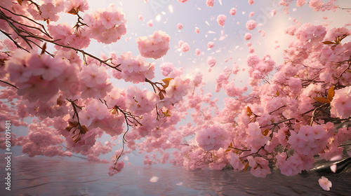 The ephemeral beauty of falling Sakura blossoms in the vibrant hues of spring. Generative Ai