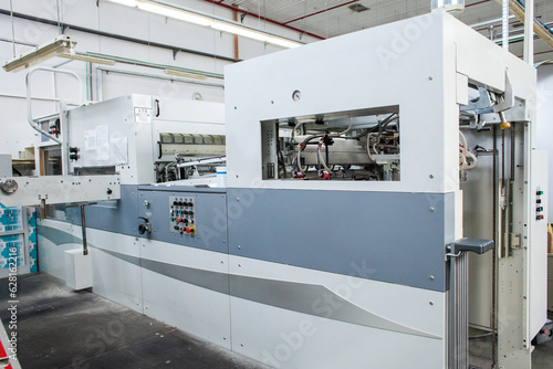 The equipment for a press. Offset machine at the printing manufacturing. Printing machine