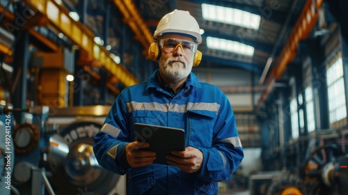 The factory worker with tablet