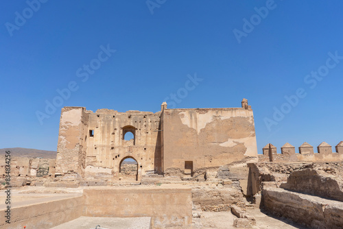 The fortifications of the Alcazaba in the city of Almeria under the intense heat of a summer