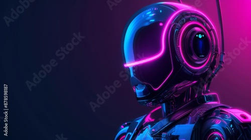 The futuristic AI robot is depicted with neon lights from one side, illustrating cuttingedge technology